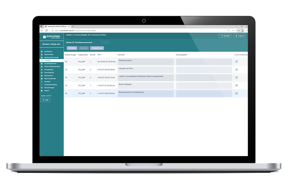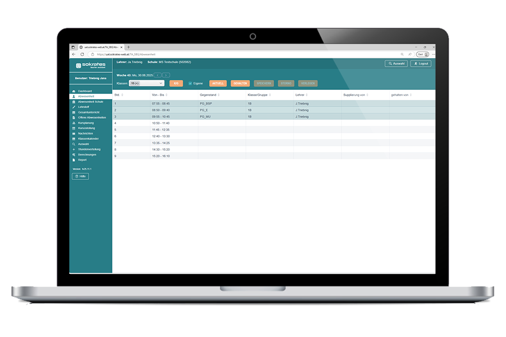 Das digitale Klassenbuch Teacher Assistant basiert auf den Daten der SOKRATES Schulverwaltung. Somit müssen Daten wie Stundenpläne, Schülerdaten etc. nicht doppelt gepflegt werden. Aufgrund des fully responsive Designs können Abwesenheits- und Lehrstoffeintragungen direkt im Klassenzimmer oder von zu Hause auf allen digitalen Endgeräten getätigt werden.